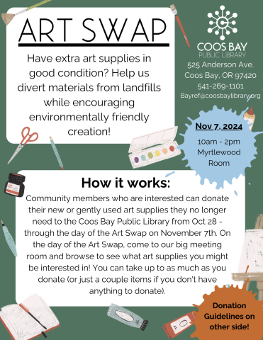 DONATION GUIDELINES: Arts and craft materials only, must be fit for reuse (new or gently used), must fit in your car, and be of the following categories: