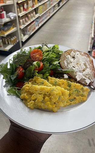 For this month’s recipe, we are excited to announce the return of our original chef, Jamar Ruff, who will be featuring: CORNBREAD FRITTERS, GARDEN SALAD, & ROASTED PEARS