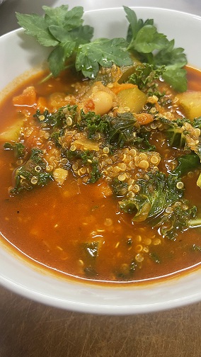 For this month’s recipe, we are excited to announce the return of our original chef, Jamar Ruff, who will be featuring: QUINOA VEGETABLE SOUP
