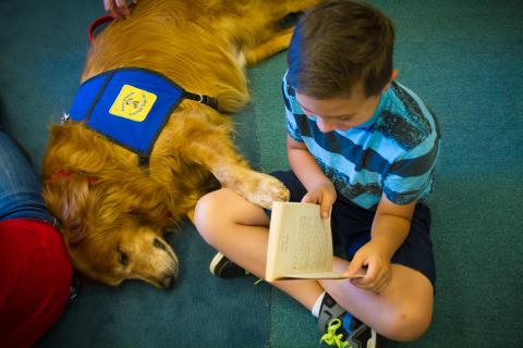 FFBC gives struggling or beginning readers a chance to practice reading skills in a relaxed and judgement-free atmosphere. Each child who registers will get a one-on-one session with a Furry Friends therapy dog.