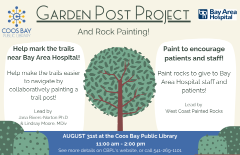 Help make the trails near Bay Area Hospital easier to navigate by collaboratively painting a trail post! This will be a drop-in project with 2 posts available to paint between 11:00am - 2:00pm. Post painting will be lead by Jana Rivers-Norton Ph.D. About 4 people can paint a post at once, so if you are waiting your turn...