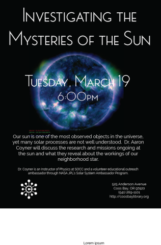 Our sun is one of the most observed objects in the universe., yet many solar processes are not well understood. Dr. Aaron Coyner will discuss the research and missions ongoing at the sun and why they reveal about the workings of our neighborhood star.