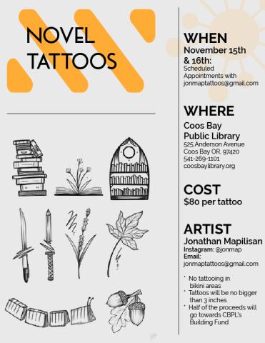 Coos Bay Public Library presents our 2nd Novel Tattoos event! See poster for details.