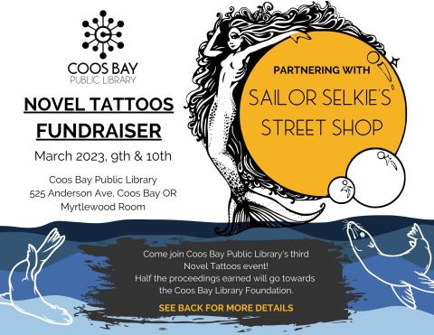 Come join Coos Bay Public Library's third Novel Tattoos event! Half the proceedings earned will go towards the Coos Bay Library Foundation.