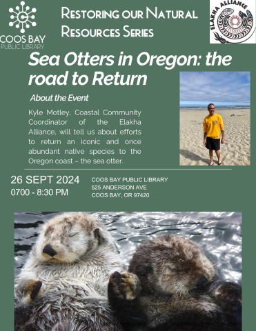 Thousands of sea otters once lived on the Oregon coast, but in 1906 the last sea otter in Oregon was killed. In the span of a few centuries, Pacific Northwest sea otter populations completely disappeared in a fur trade frenzy. While this story mirrors the tragedies that happened for many species during colonization, there is hope for the return of this social animal. Join us for a presentation by Kyle Motley from the Elakha Alliance on the current efforts to return the beloved sea otter to the Oregon coast.