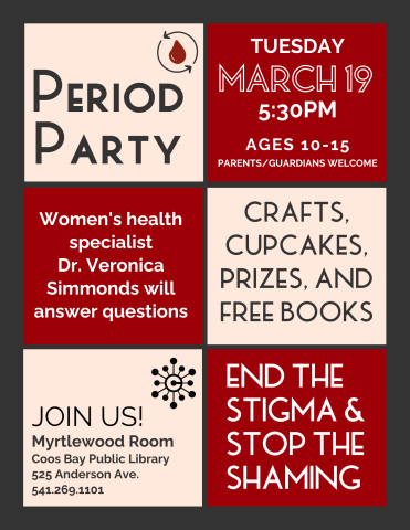 Create a period bracelet, eat cupcakes and learn more about your body and periods. Women's health specialist Dr. Veronica Simmonds will be on hand to answer questions and offer suggestions on common issues. Enter to win a gift basket of feminine hygiene products. Each participant will walk away with a free book.