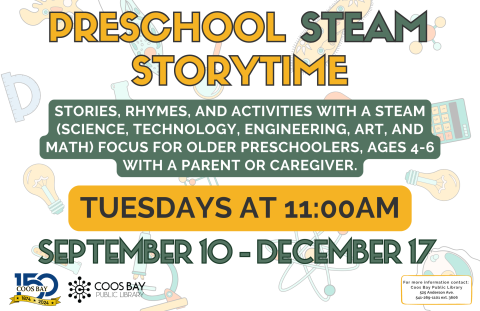 Stories, rhymes, and activities with a STEAM (Science, Technology, Engineering, Art, and Math) focus for older preschoolers, ages 4-6 with a parent or caregiver.