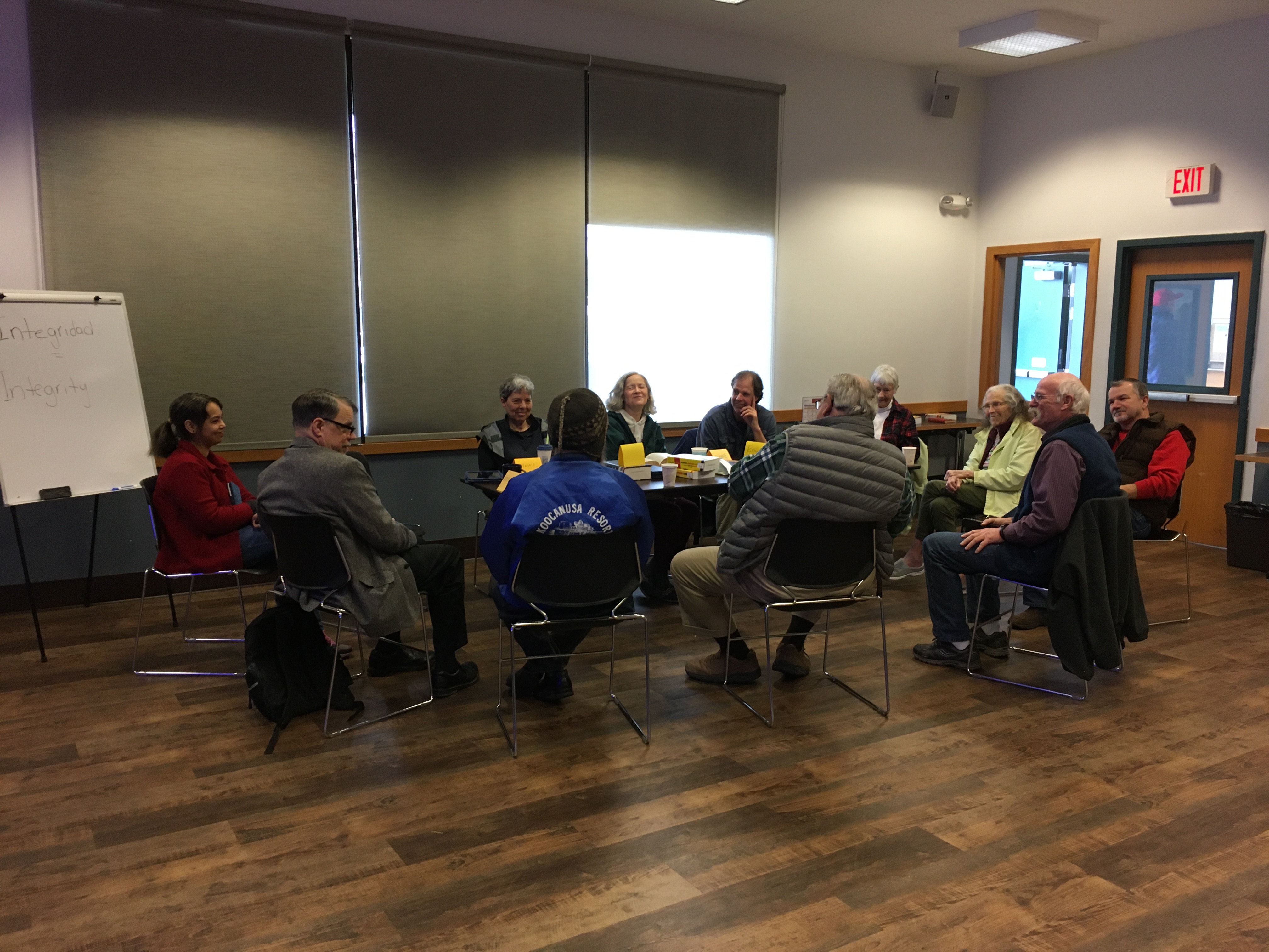 Spanglish group sitting around table conversing
