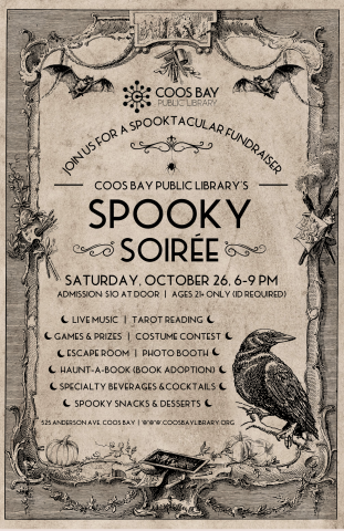 Adults 21 and over are invited to a frighteningly fun time at the Coos Bay Public Library on Saturday, October 26th from 6-9pm for our first ever Spooky Soirée!