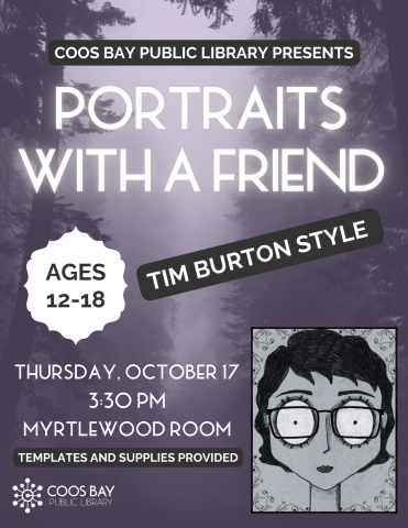 Bring a friend and create Tim Burton Style Portraits of each other. No experience required and all supplies provided.