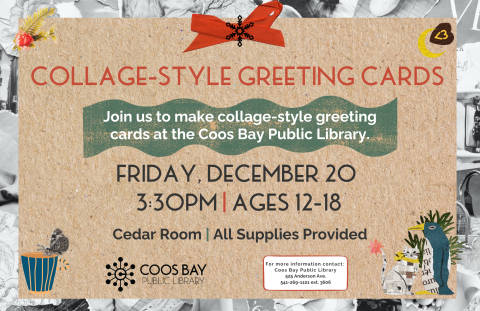 Teens aged 12-18 are invited to join us to make collage-style greeting cards. All supplies provided.